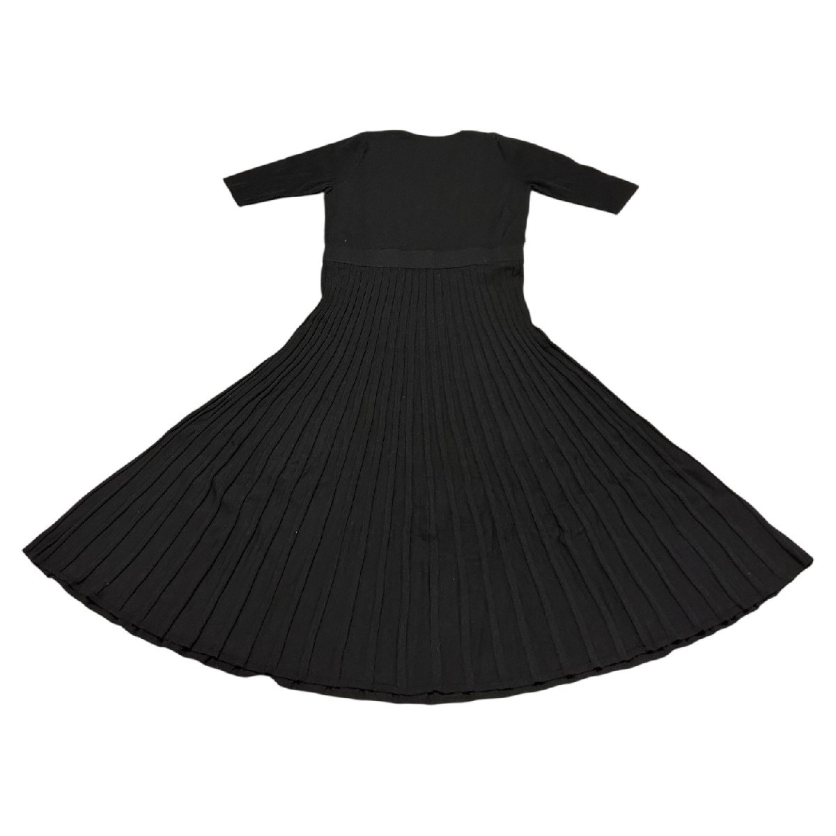 | Demi-Luxe BEAMS デミルクスビームス Vネックニットワンピース 38サイズ ブラック プリーツ 半袖 上品 ブランド シンプル HMY |