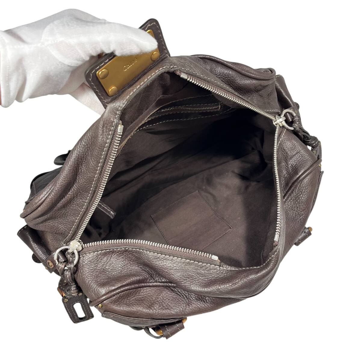 This is the iconic Chlo Paddington leather handbag, a coveted piece that embodies timeless Parisian chic with a distinctive edge. Crafted from luxurious grained leather in a deep chocolate brown tone, it showcases the brand’s signature oversized gold-tone padlock and key, engraved with “Chlo” — a hallmark of the Paddington line. The structured yet slightly slouchy silhouette is both fashionable and functional, offering ample interior space for daily essentials.