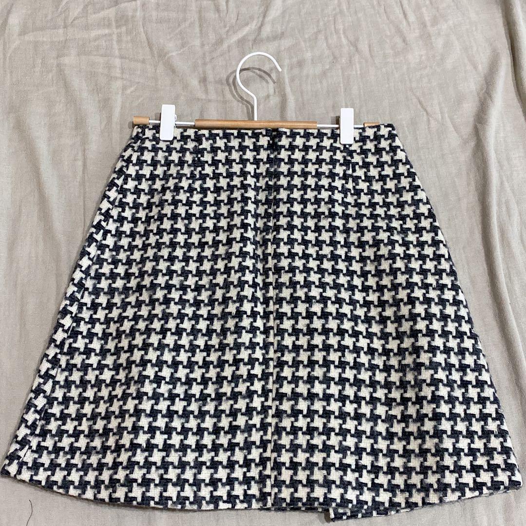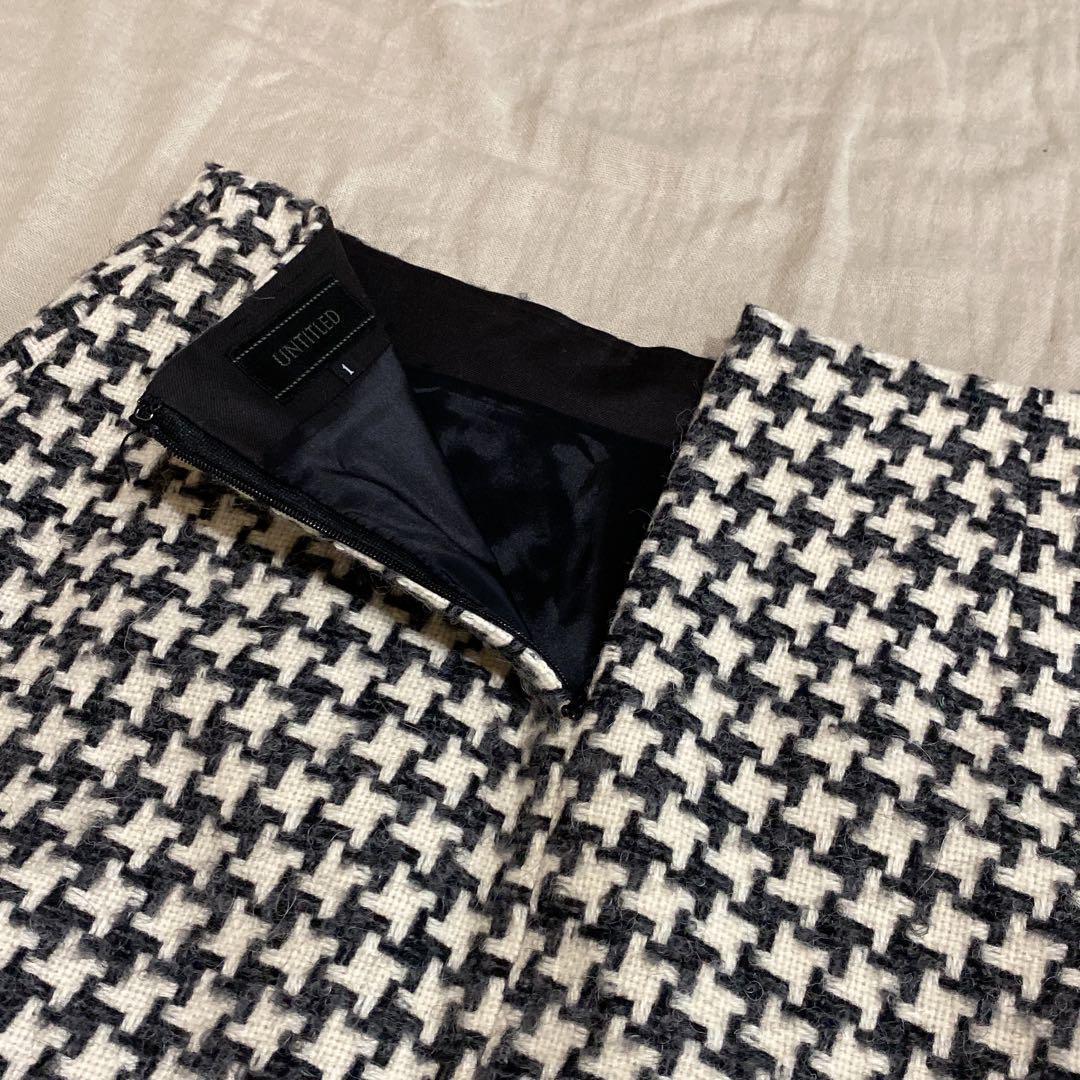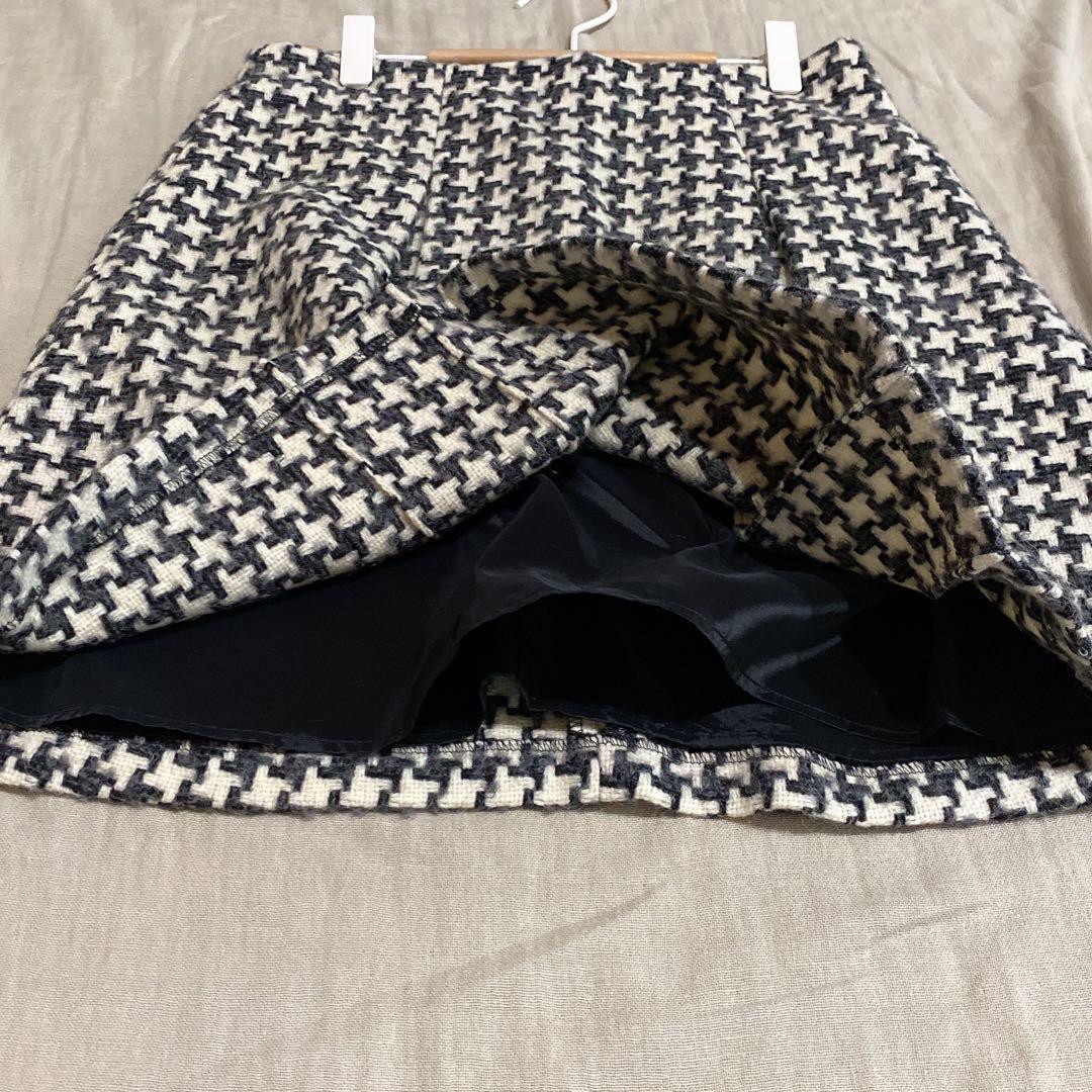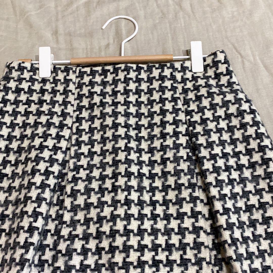 371アンタイトル【1】白黒/チェック柄/膝丈スカート/千鳥格子/ウール 6CA5F1