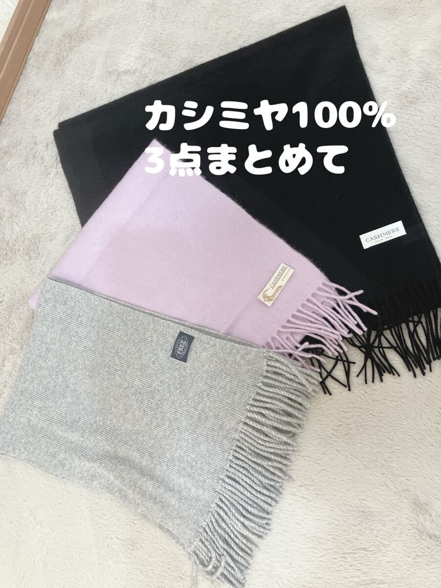 カシミヤ100% マフラー ストール 3点 まとめて ブラック/ラベンダー/ライトグレー cashmere レディース 服飾小物