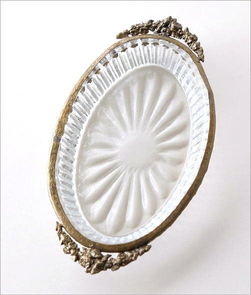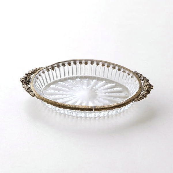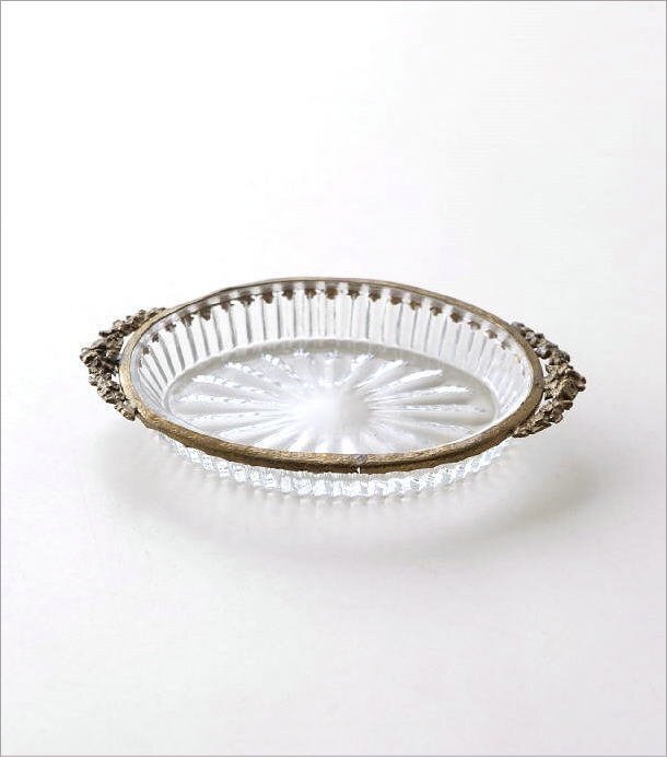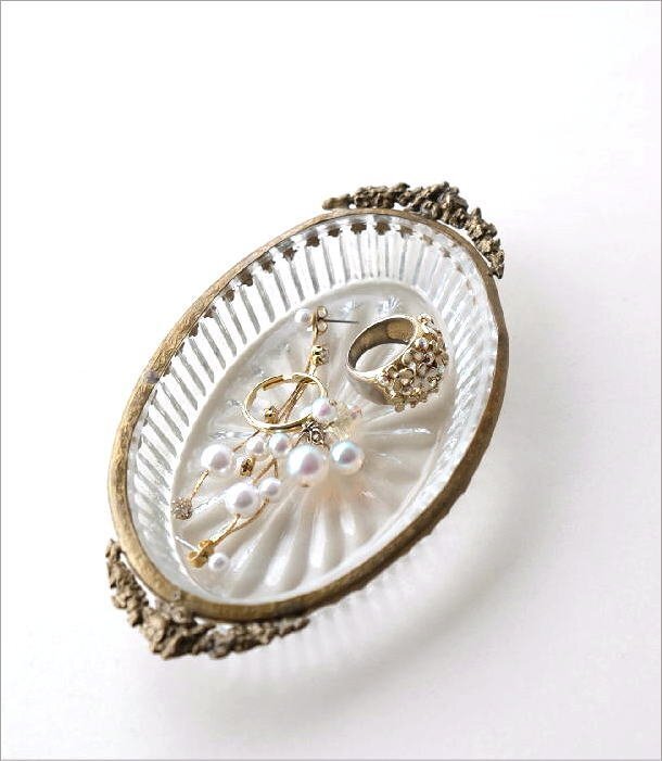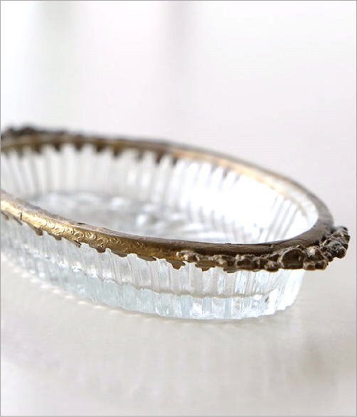 | アンティーク風のガラストレーは 真鍮の飾りと模様入りガラスがレトロな雰囲気 散らばりやすい、デスクや棚の上の 小物やアクセサリーをトレーにまとめると 何気なく置いたものも、 ディスプレイしたオブジェのように オシャレに決まりそうです 商品名 : ブラスとガラスの小さなトレー 商品番号 : ebn9547 全体サイズ(cm) : 幅14.5×奥行8×高さ2 トレー内サイズ : 幅10×奥行6.9×深さ1.5 材質 : ガラス 真鍮 重量 : 130g 生産国 : インド ※僅かなガタつきやガラスの小傷、小さな欠け等はご容赦ください ※商品の特製上、手作り品のためブラスの浮きや欠け、模様等に個体差があり商品の味となっています ※ディスプレイによる色の違いはご了承下さい |