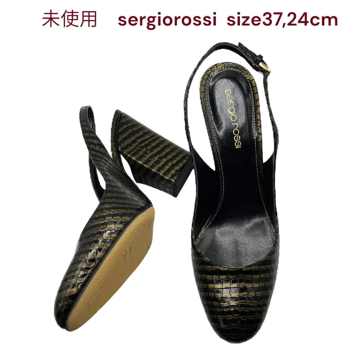 未使用 セルジオロッシ sergiorossi 豪華型押し パンプス ヒール 37、24cm レディース 5D250