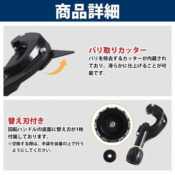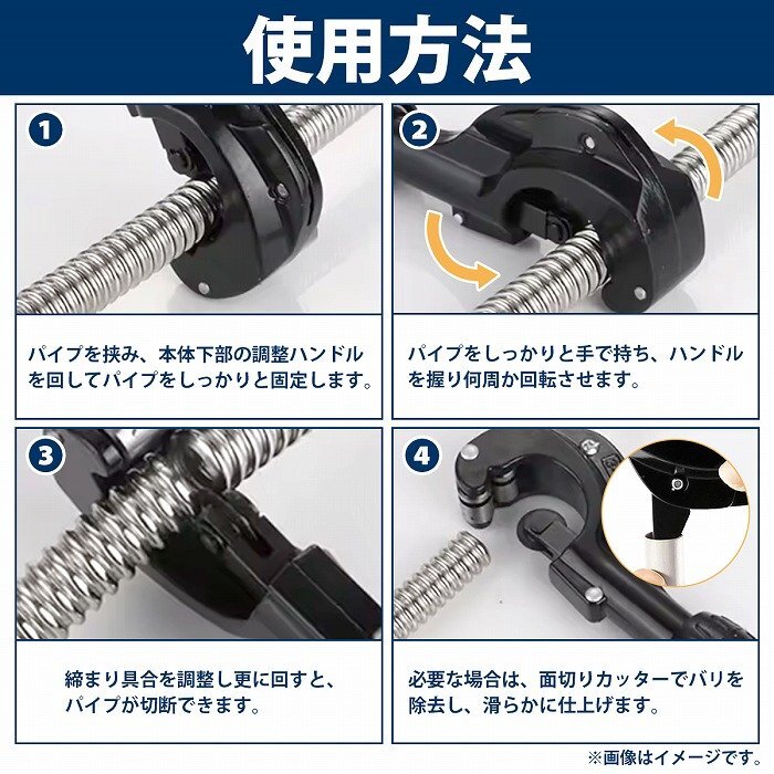 商 品 説 明力を入れずにスチール、アルミ、銅などのあらゆるパイプの切断が可能です!