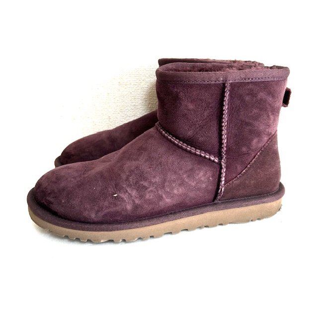 | UGG アグ ムートンブーツ 22.0cm パープル 紫 ブーツ 靴 防寒 ファッション 秋冬 ボア ショート丈 おしゃれ 普段使い HMY |