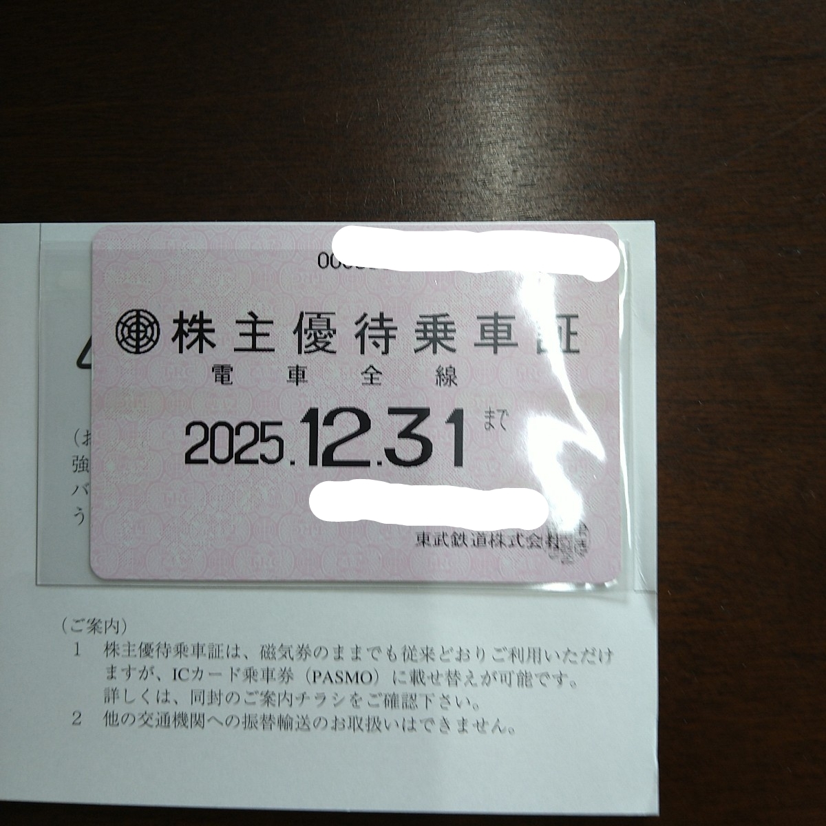 商品名 : 東武鉄道株主優待乗車証(定期タイプ)