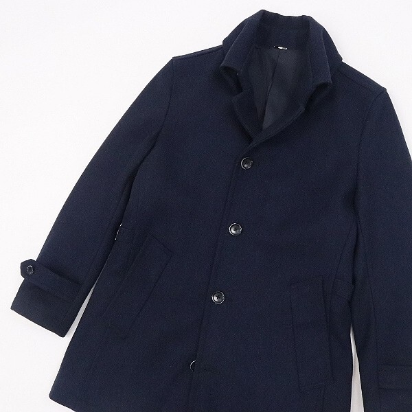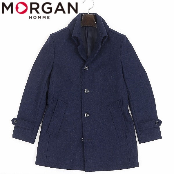 | 【HB356】美品◆MORGAN HOMME モルガン オム ウール サイドベルト コート 紺 ネイビー S | |