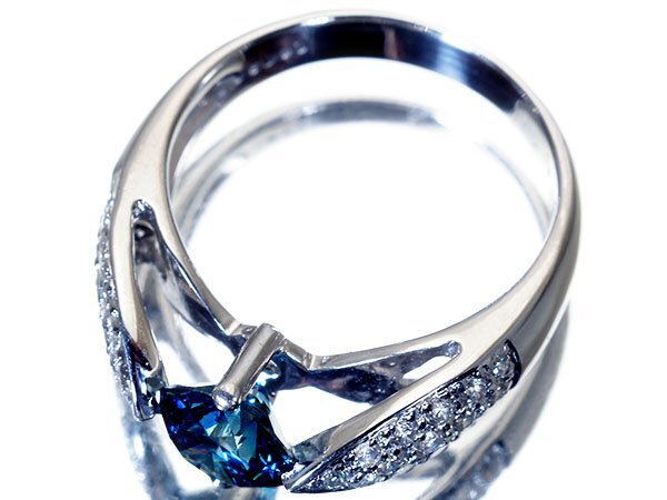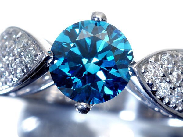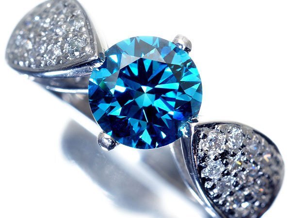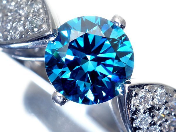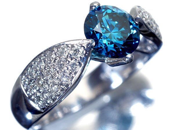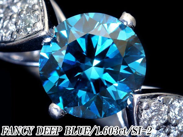 美しい輝き放つ超希少な超大粒極上1粒ブルーダイヤモンド1.603ct(SI‐2)&脇石良質クリアダイヤモンド総計0.51ctを素敵に宝飾した、超高級Pt900リングを1円から特別大放出致します!