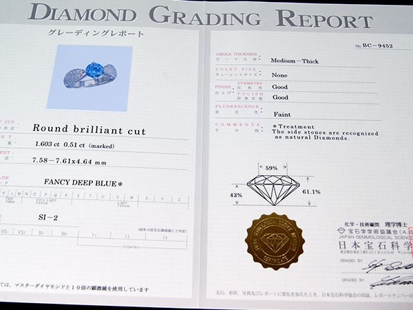 日本宝石科学協会発行のダイヤモンド鑑定書付属