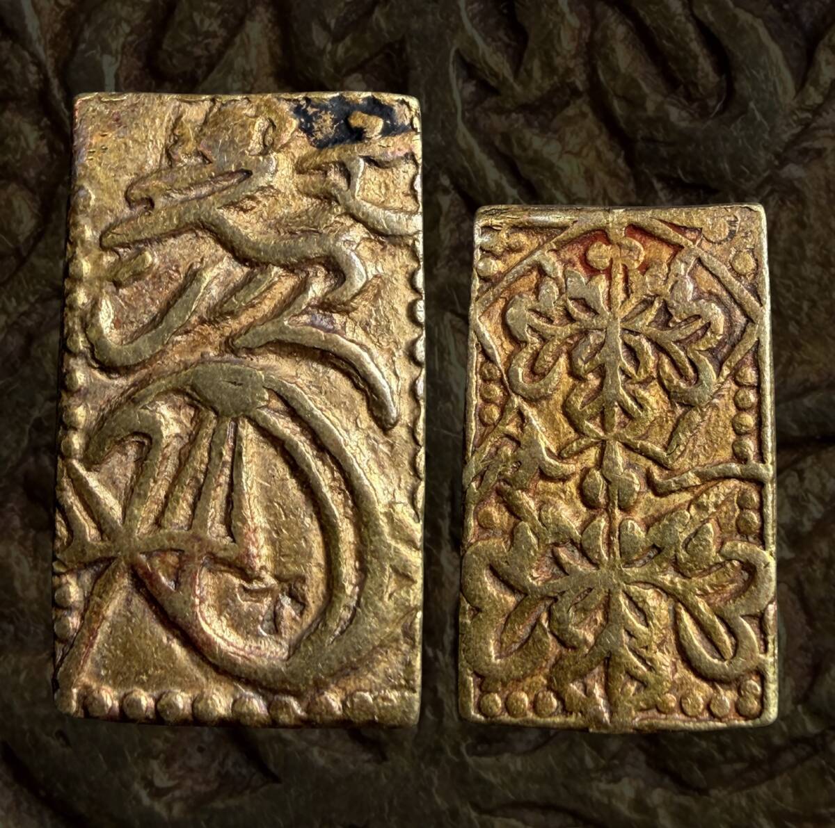 【偲】◆無刻印(桐極印打)◆元文一分判金 極美品 古銭 古金銀 金貨 真文一分 元文一分金 重約3.28g r-1181