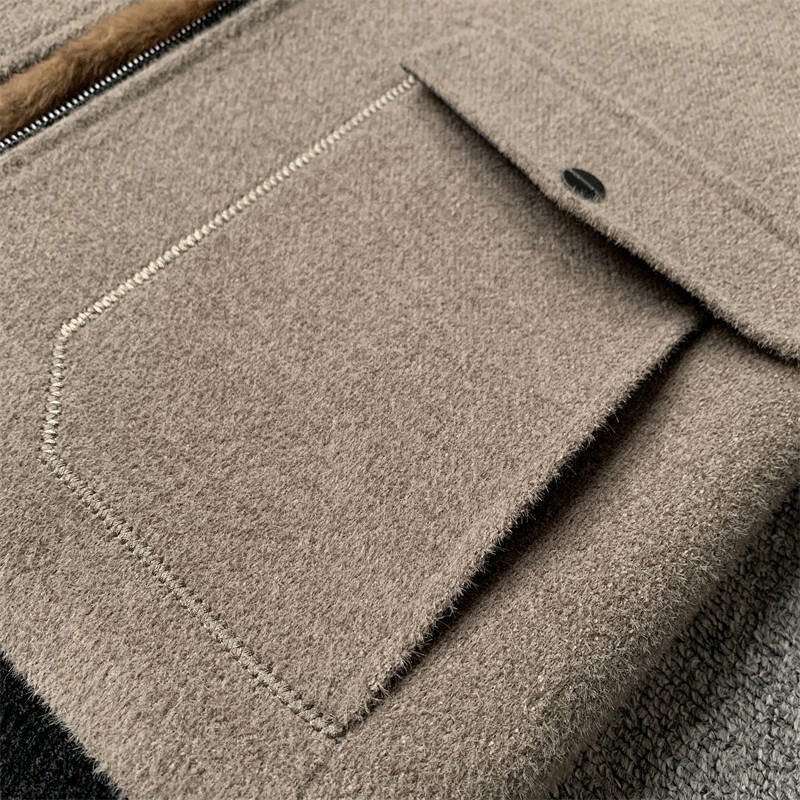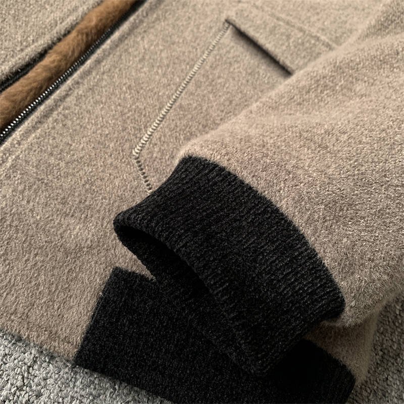 新品 DCKMANY ウール混 ミンク調 フェイクファー ニットジャケット 裏地フェイクミンク 秋冬 メンズ 裏起毛 防寒 秋冬 極暖 ジップアップ ボアブルゾン アウター カーキ E554-2XL