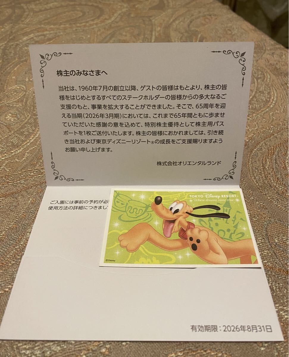 ♪オリエンタルランド株主優待パスポート1枚を出品いたします。