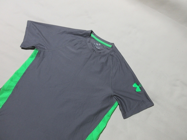 A-836★アンダーアーマー・MTR7796♪グレーx緑/ヒートギア/半袖Tシャツ(SM)★