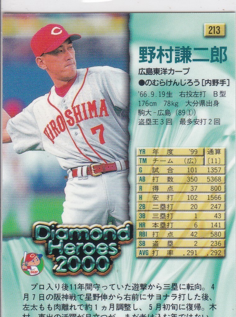 ●2000BBM/DH 【野村 謙二郎】 BASEBALL CARD No.213:広島 R