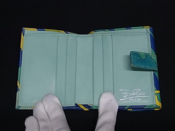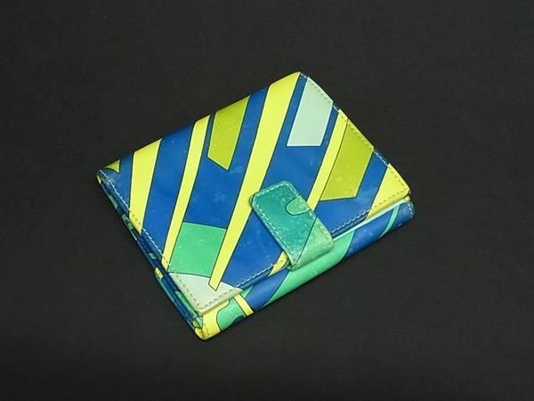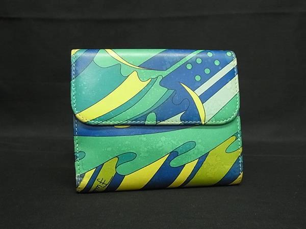 EMILIO PUCCI エミリオプッチ レザー 二つ折り 財布 ウォレット レディース グリーン系×マルチカラー DJ9837