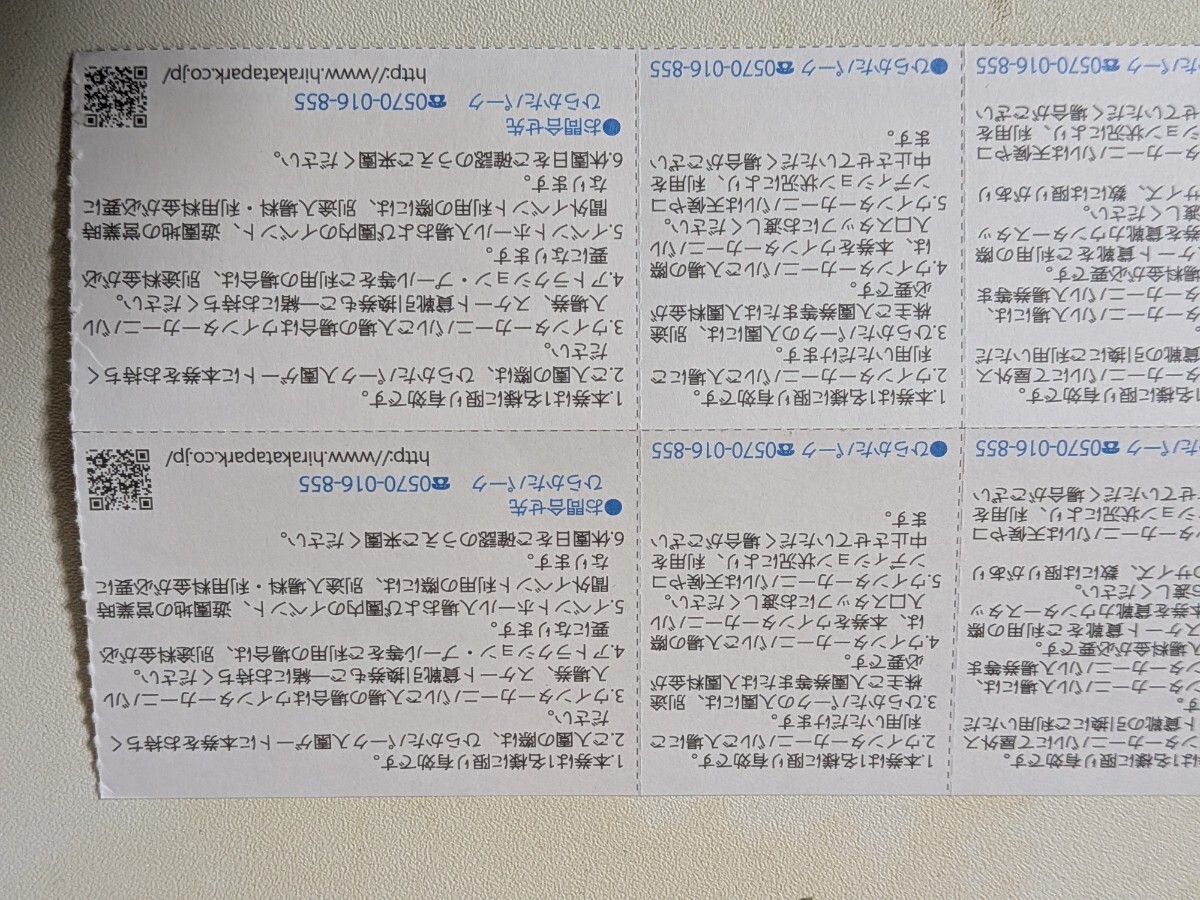ひらパー入場券とひらパーアトラクション遊び放題フリ—パス料金300円割引券各2枚