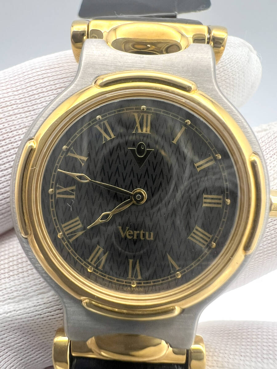 エレガントなVertu(ヴァーチュ)の腕時計です。ステンレススチールとゴールドプレート(GP)のコンビネーションによるクラシックなバイカラーデザインが特徴です。コレクターの方にも、普段使いにも最適な、魅力的な逸品です。