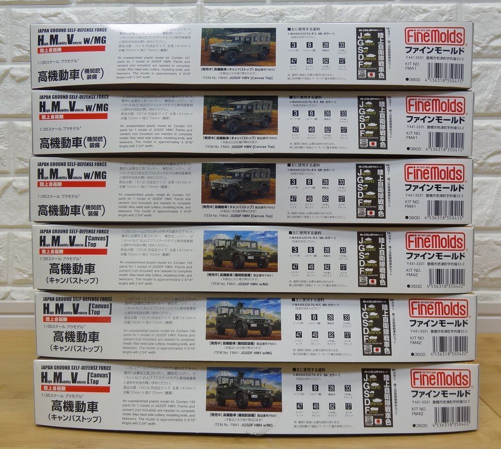 | ご覧いただき、ありがとうございます。 商品情報・発送方法等を必ずご確認の上、ご入札をお願い致します。 【商品情報】 FineMolds 1/35 陸上自衛隊 高機動車(キャンバストップ)/(機関銃装備) 6個まとめ 未組立プラモデル 現状品 【付属品】 画像のものが全てです。 【状態】 キャンバストップ/機関銃装備の各1個が説明書欠品の現状品となります。 内袋が未開封の為、欠品パーツはないかと思います。説明書にてパーツ確認しております。 内袋は未開封ですが、ランナーよりパーツが外れている場合もあるかと思います。 箱、説明書等に汚れ、シミ、折れ、ヘコミ等の傷みがあるかと思いますので、予めご了承下さい。 中古商品の為、キズ、スリキズ、使用感、劣化、汚れなどがございますので、予めご了承お願い致します。 ※わかりづらいかもしれませんが、写真にてご確認下さい。また、写真に写り切らない傷等もあるかと思いますが、ご了承下さい。 画像にてご確認頂き、ご納得いただけましたらご入札いただきますよう、よろしくお願い致します。 当方、プラモデルの知識がない為、ご質問頂いてもお答え致しかねますので、予めご了承下さい。 上記の状態説明はあくまで主観です。 状態についてはなるべく記載しておりますが、まれに見落としがある場合もあります。 中古商品であることをご理解の上、ご入札をお願い致します。 また、あくまで中古商品ですので神経質な方は入札をお控え頂きますようお願い致します。 ノークレーム・ノーリターンでお願いします。 【発送方法】 ゆうパックでの発送とさせて頂きます。 送料につきましては、落札者様のご負担にてお願い致します。 発送までに、若干のお時間を頂く場合がございます。 ご了承頂きますよう、よろしくお願い致します。 輸送が原因による故障・トラブルに関しては一切の責任を負いかねますので、ご了承頂きますよう、お願い致します。 | |||