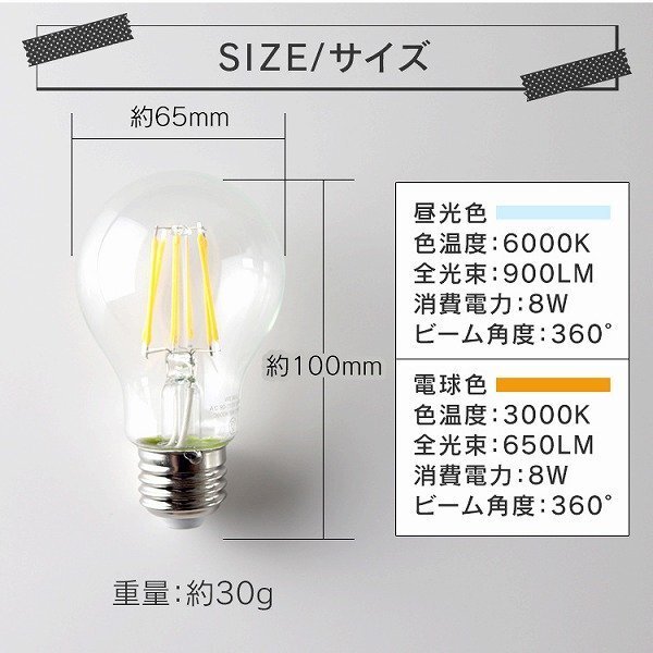 安心の1年保証 省エネ&長寿命のLED電球! 本商品の発光色は… ・クールで見やすい「昼白色」 オシャレなレストランやBar、サロンなどにぴったりです。 電気料金の節約にもなるのでオススメです。 【商品仕様】 内容:本体×10 サイズ:(約)65×100mm 重量:(約)30g 全光束: 昼光色:900LM 消費電力:8W 口金:26E ビーム角度:360° |