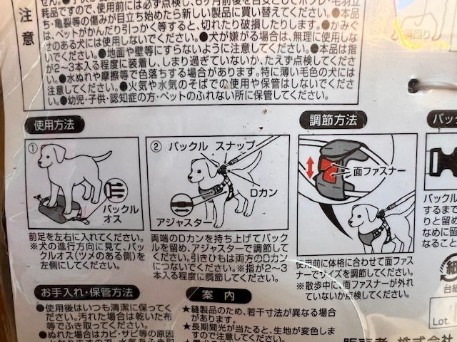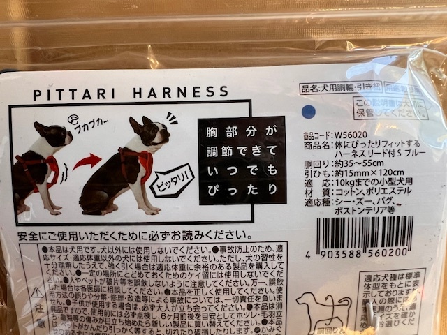 | * 商品説明 * 胸部分が調節できるから体にぴったりフィット。 着け心地がよく動きやすいハーネス。リード付き。 Sサイズ 体重10kgまで 胴回り35~55㎝ リード 幅1.5㎝×長さ120㎝ 新品未開封品です。 在庫処分品とご理解の上ノークレームノーリターンでお願いします。 | ||||||||
