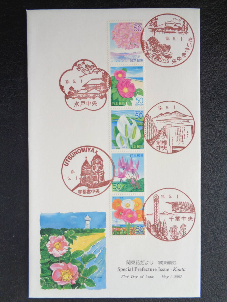 初日カバー    2007年    ふるさと切手   関東花だより    茨城県・栃木県・群馬県・埼玉県・千葉県