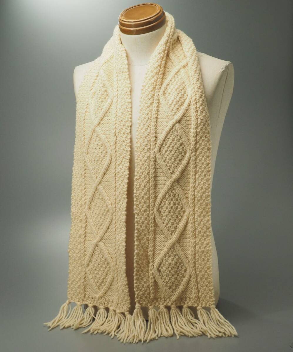 | TI6973◎アイルランド製 John molloy ジョンモロイ アランニット マフラー ストール ダイヤ柄 ショール アイボリー系 全長:約166cm | |||