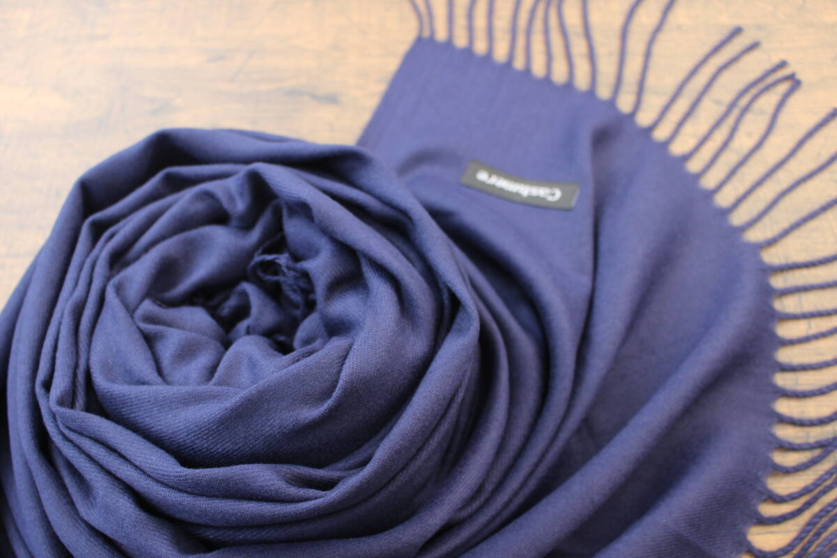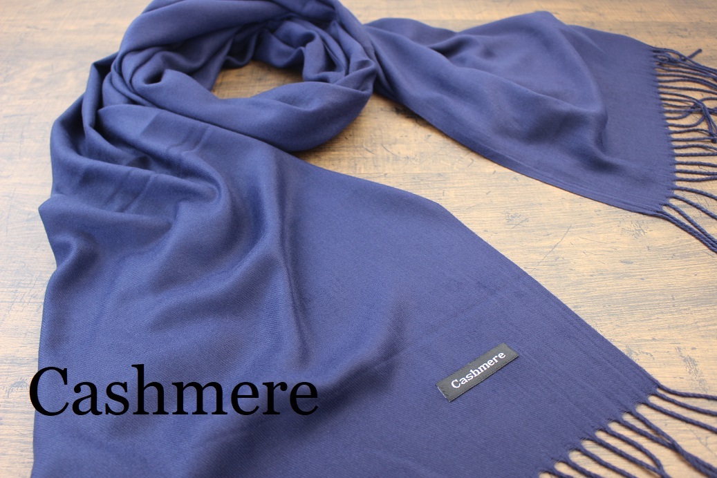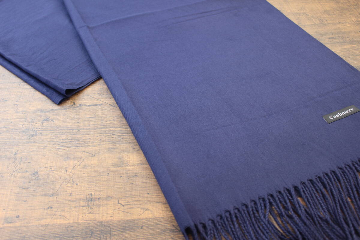 新品【カシミア Cashmere】無地 ネイビー NAVY 紺 Plain ライトタッチ 大判 ストール/マフラー