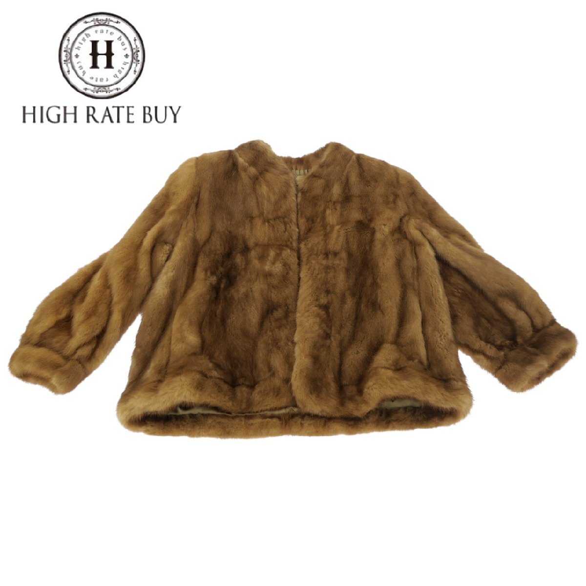 1円スタート 毛皮コート Rambulton ランブルトン オンワード ハーフコート アウター リアルファー キャメル レディース サイズ M