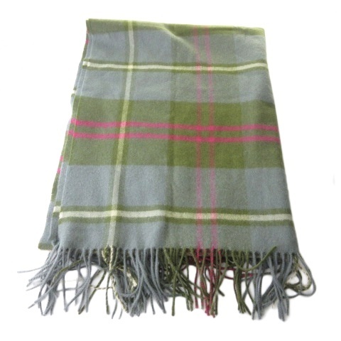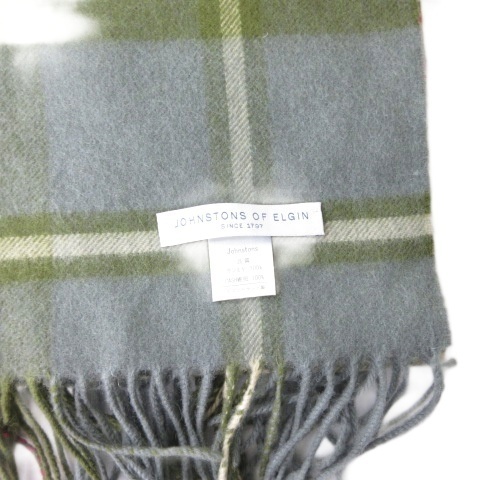 ジョンストンズオブエルガン Johnstons of Elgin カシミヤ100 マフラー ショール チェック フリンジ グリーン 緑 レディース