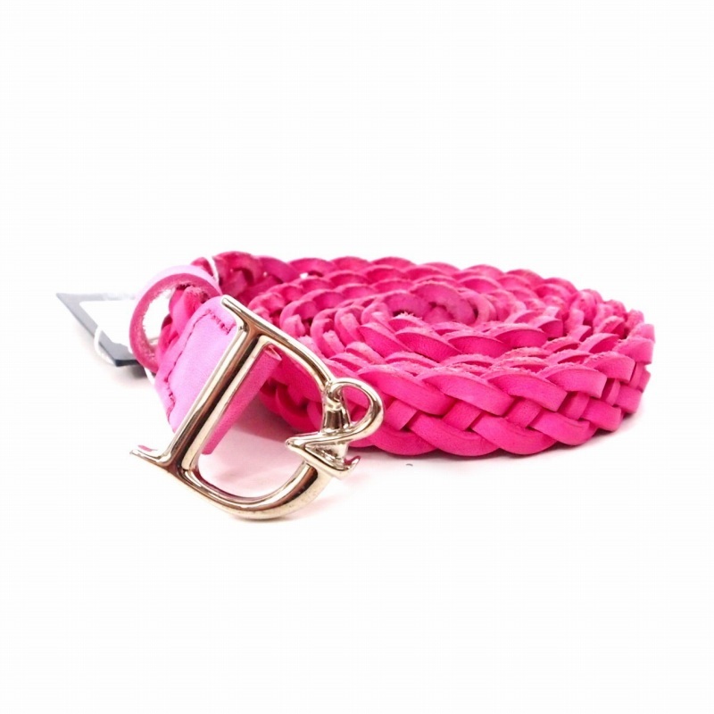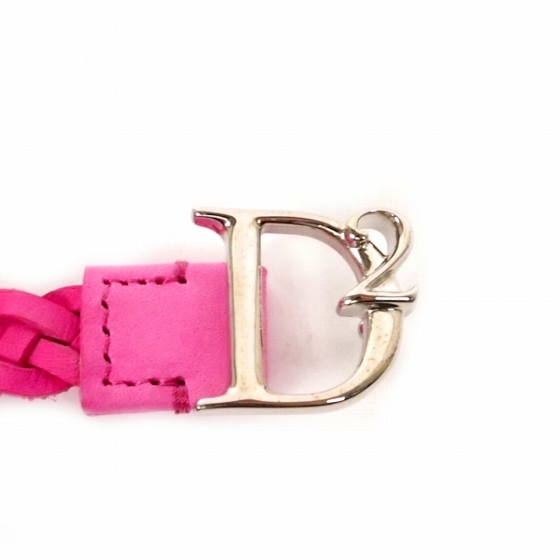 未使用品 ディースクエアード DSQUARED2 22AW ロゴバックル メッシュレザーベルト 編み込み 85 ピンク S83BE0325 国内正規 レディース