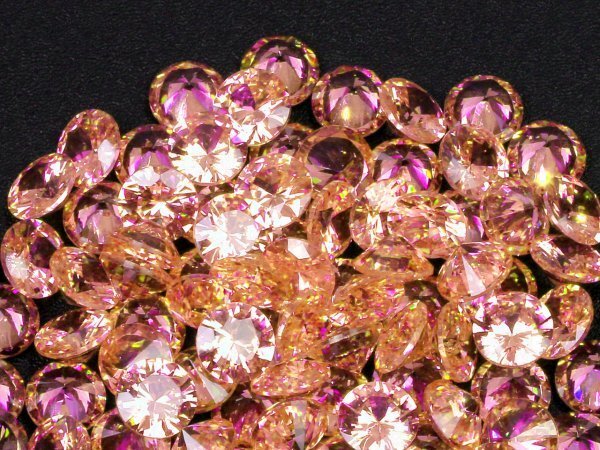 シャンパンカラー ラウンドブリリアンカット キュービックジルコニアルース まとめて約50個セットです。