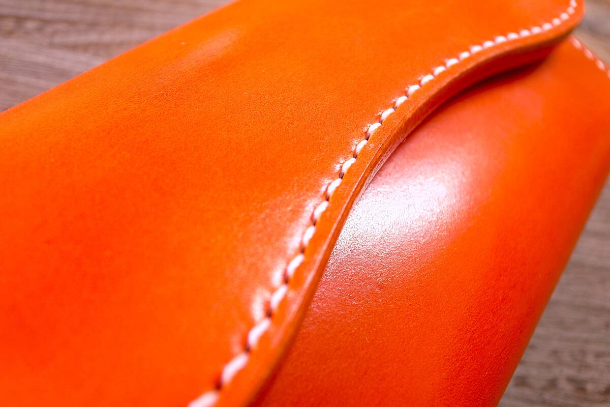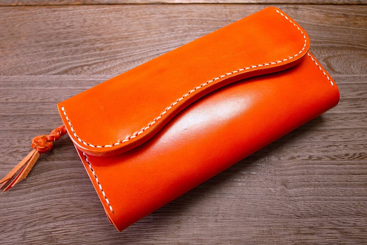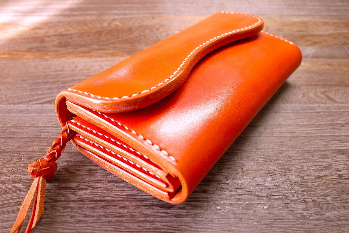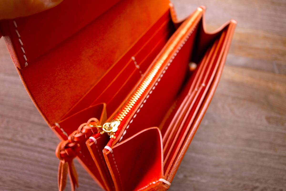 オールハンドメイドで制作した長財布になります。 縫い糸はステッチが映える白糸を使用しております メインの革は約4.3mmの厚革を使用しております 重厚感たっぷりのウォレットになります。 厚革好きの方にはお勧めです 革が固く厚いので馴染むまでは、蓋が開いてしまうかもしれません 小銭入れ部分は信頼のあるYKKのファスナーを使用し 開閉しやすいように革ひもを四つ編みにしてあります。 蓋に使用している金具は使えば味が出てくる真鍮製のものを 取り付けてありますので、革同様にエイジングを楽しめると思います カードは12枚収納 ウォレットサイズ 約20.3cm×約11.5cm 色 赤 お届けするものは、写真の商品になります。 オールハンドメイドですので、手間と時間はかかりますので 大量生産をすることが出来ませんが革の裁断、縫い付けなど、 全ての工程を私自身が手作業にて行っております。 革の表情が一つ一つ違うので、世界に一つだけの1点物になります。 ★★★★★★★★★★★★★★★★★★★★★★★★★★★★★★ ホームページがありますので制作のご依頼・商品のお問い合わせなどは この文字をクリックして下さい。 ★★★★★★★★★★★★★★★★★★★★★★★★★★★★★★ オプションでドロップハンドルの希望があれば、取り付け可能です ドロップハンドルの写真はHPのロングウォレットのページで 確認が出来ます。 ※革の厚みなどで取り付け出来ない場合や在庫が無い場合もございますので ご希望がありましたら事前にお問い合わせ頂ければと思います。 ★★★★★★★★★★★★★★★★★★★★★★★★★★★★★★ | ||||