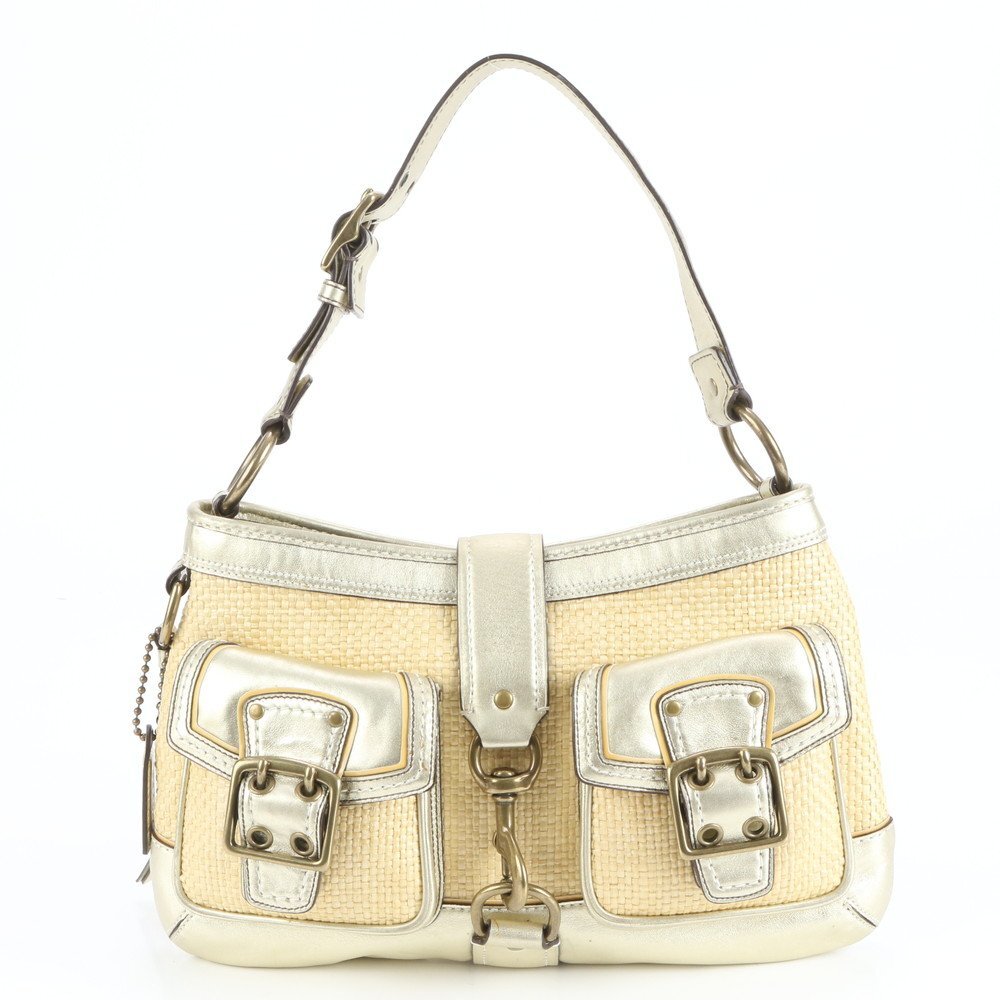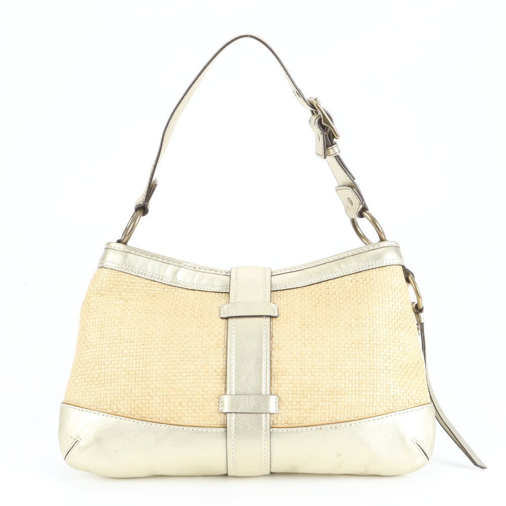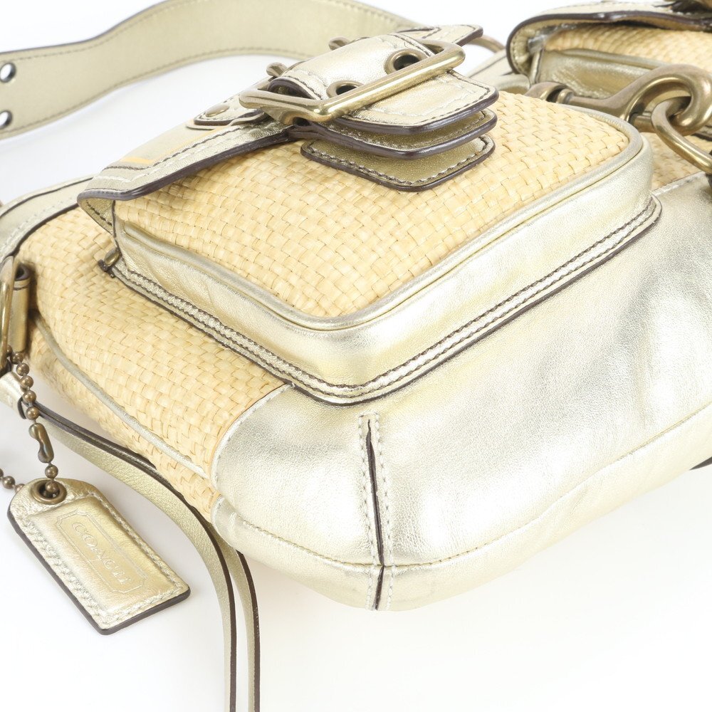 1円■極美品■コーチ■レガシー ラフィア レザー ショルダーバッグ 肩掛け ワンショルダー ゴールド 金具 105 本革 レディース ERE CV9-6