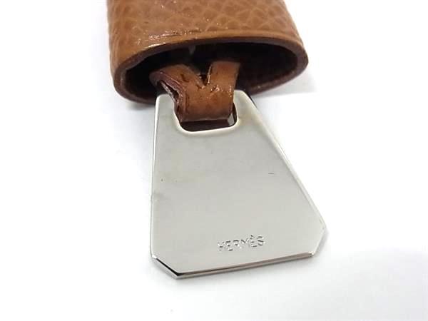 1円 ■極美品■ HERMES エルメス ヴォーエプソン シルバー金具 ドッグタグ ミニ クロシェット バッグチャーム □C刻印 ブラウン系 BT0505