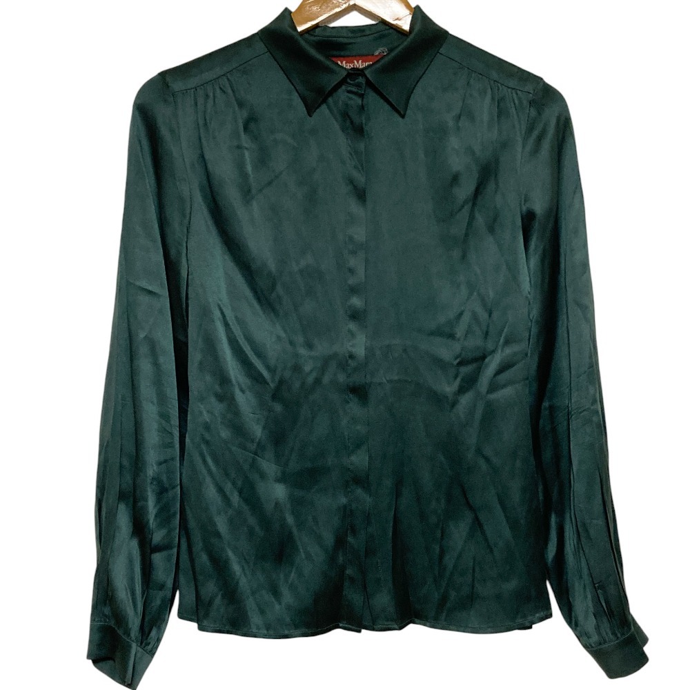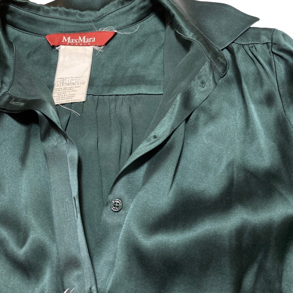 美品 Max Mara STUDIO マックスマーラ ストゥディオ STUDIO ロングスリーブ シルク シャツ グリーン