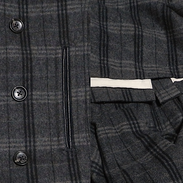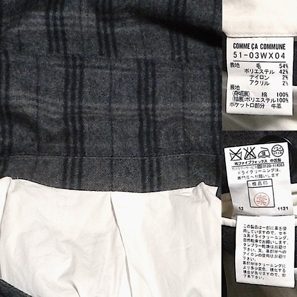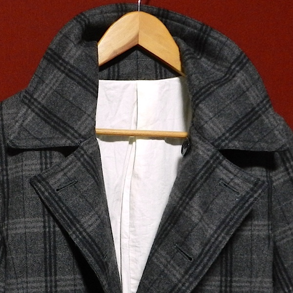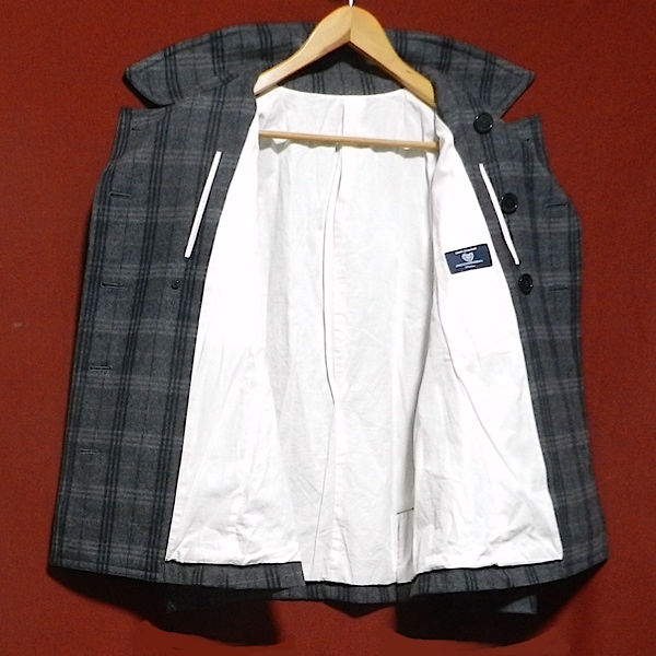 COMME CA COMMUNE コムサコミューン ウール デザイン Pコート ピーコート ジャケット グレンチェック グレー / 黒 メンズ M 美品