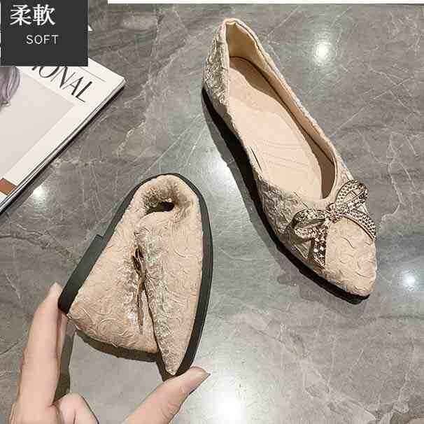 ・ポインテッドトゥデザインとアッパーに装飾があり脚がスッキリ見え。