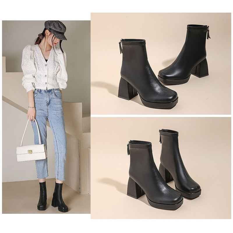 靴 ブーツ 裏起毛 ショート 太ヒール 裏起毛 美脚 脚長 スタイルアップ ミドル 36 カーキ