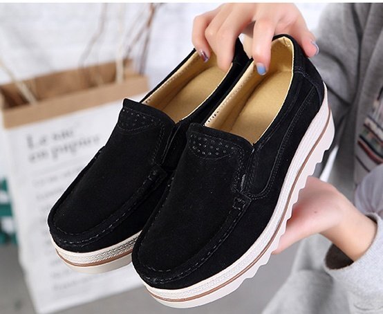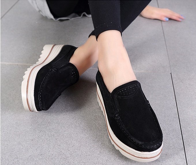スニーカー レディース スリッポン 厚底 ヒール スリッポン シューズ 秋 レディースシューズ ローカット フラット ブラック22.5CM