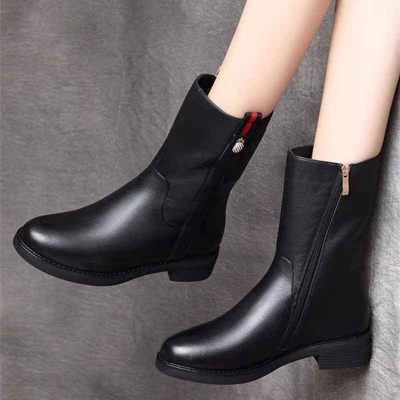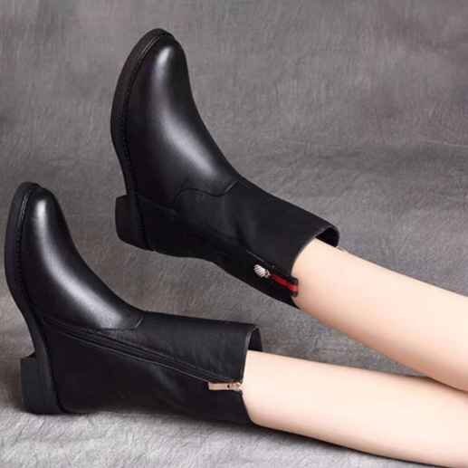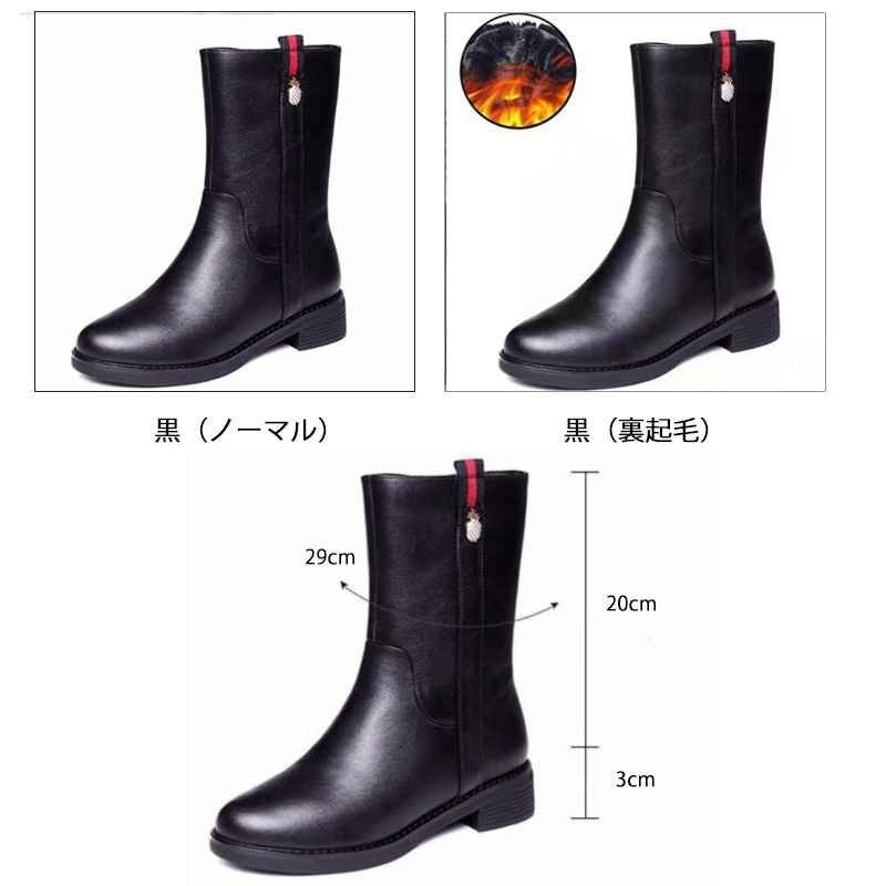 ブーツ 裏起毛 ショート 太ヒール 裏起毛 美脚 脚長 スタイルアップ ミドル 38 黒(裏起毛)