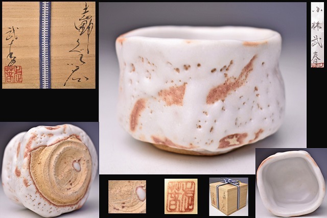 小林武春 ★ 志野 ぐい呑 ★ 共箱 共布 栞 ★ 酒器 ★ 土岐市ご出身 ★ 美濃肥田にて築窯 ★ 竹林窯 ★ 大振りで存在感ある逸品 ★