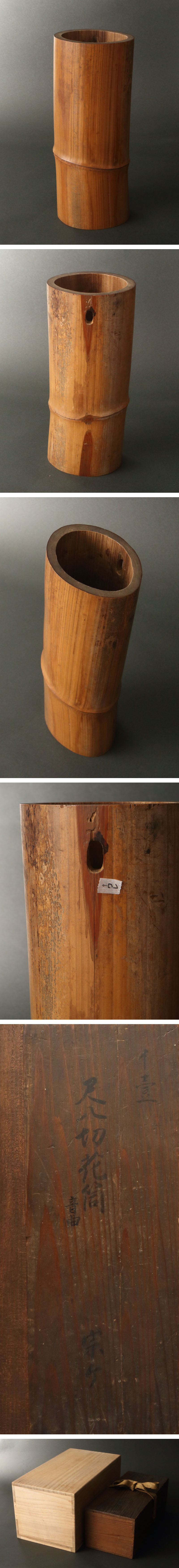 委託HK◇上田宗箇 竹尺八花入 追銘「音曲」(茶道具 竹工芸 花器 花生 上田重安 上田宗箇流 武家茶道 茶人 武将 広島 茶事 茶席 茶の湯)