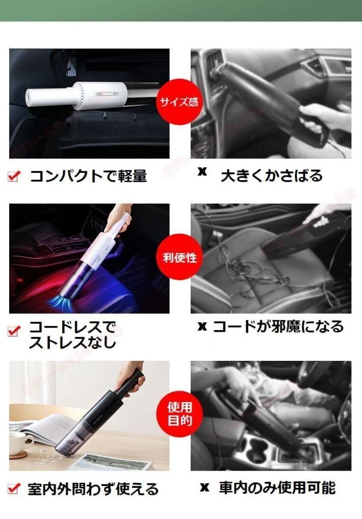 【使用シナリオ】: 家庭用および車用ワイヤレス掃除機