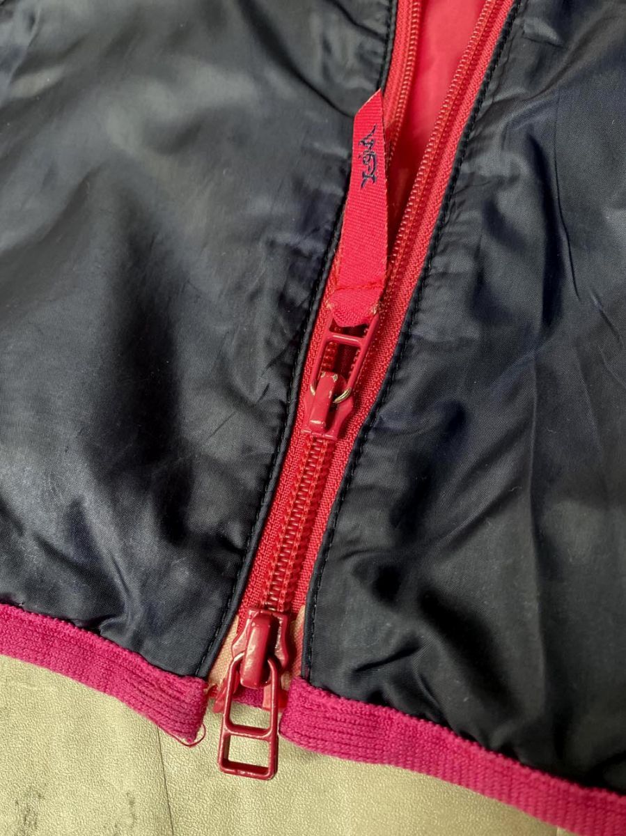 | 商品の状態 | 全体的に着用感があります。 右袖先に破れがあります。 バックプリントに剥げがあります。 ファスナー金属部分に剥げがあります。 その他状態は写真にてご確認ください。 使用感がございますが、まだまだ活躍してくれると思います。 (当方管理番号:syfl084822-t) | ||||||||||