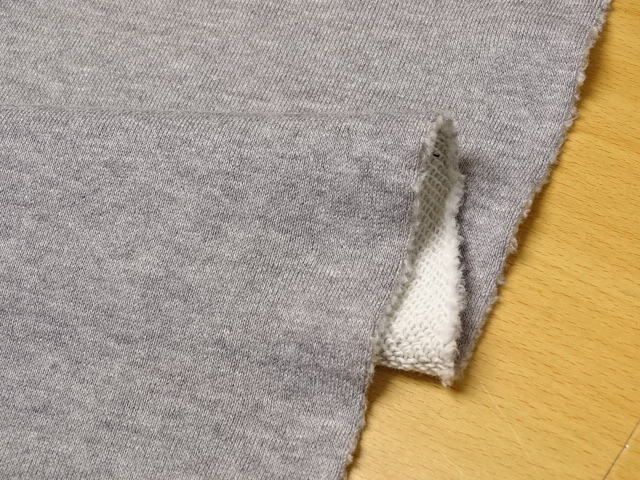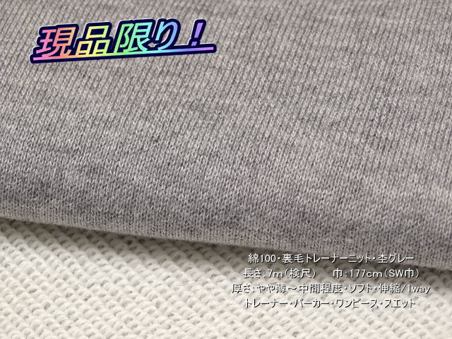 商品は、綿100・裏毛トレーナーニット・杢グレーでございます。