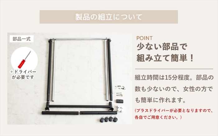 | お客様組立品(組立の目安:30分程度、必要工具:プラスドライバー) |