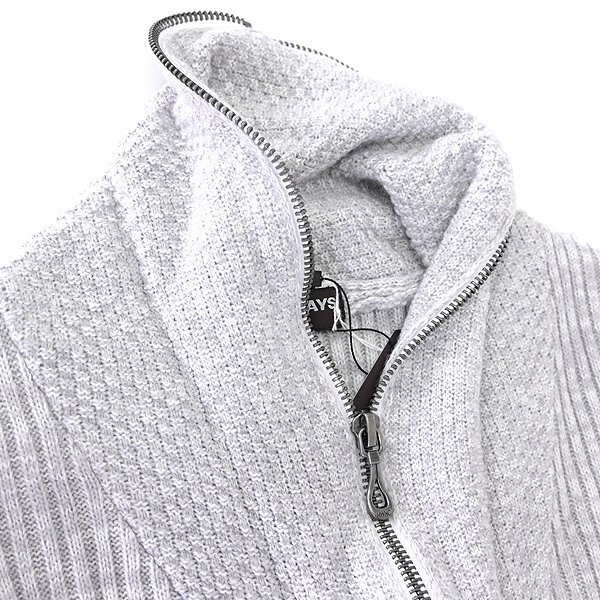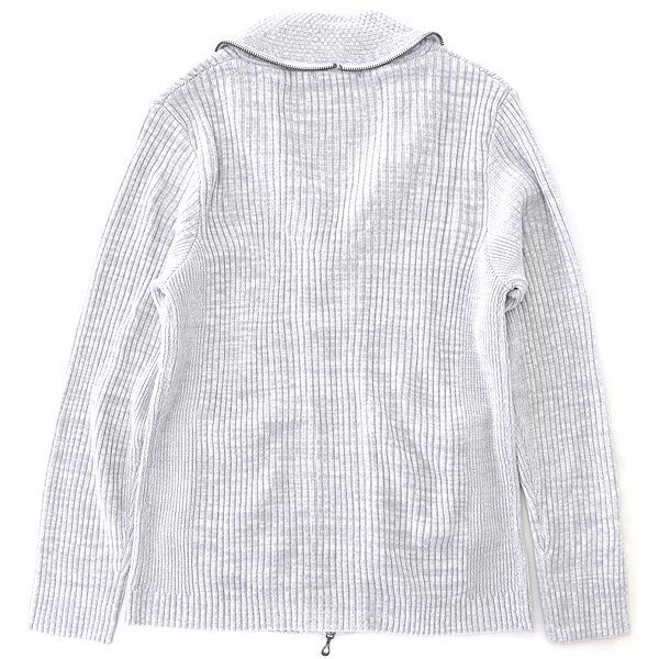 ニコル定番のショールカラーダブルジップブルゾンです。 2色のアクリル糸を引き揃えて7ゲージで編み上げており、杢調にすることでワンランク上の表情に仕上がっています。 また、リブ編みをベースに切り替えしが施されており、フロント~衿部分は程良い立体感が特徴の変形カノコ編みでボリューム感を持たせ、前後細腹と内袖はリブ巾を細くすることで引き締まったシャープな印象をプラスしています。 ご自宅で手洗いが可能なのでイージーケアなのも嬉しいポイントです。 |