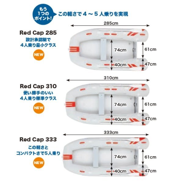 ●予備検査付艇について・・・・・・・・・・予備検査付の艇は、販売時に船の成績表が付属いたします。船舶検査を受ける場合はJCIへエンジンと法定備品を持ち込みで船舶検査を受けることができます。この場合は検査に応じた2馬力を超えるエンジンを装着しての使用が可能になります。(2馬力を超えての使用は要免許) ボートのサイズが 全長×0.9=300㎝以下の場合 (ボートの製品サイズが333センチ以下の場合 )は2馬力まででの使用では船舶検査や免許が必要ありません。又購入時に付属する成績表には期限がないため、当初は2馬力艇で使用して、のちほど船舶検査を受けて使用することも可能です。