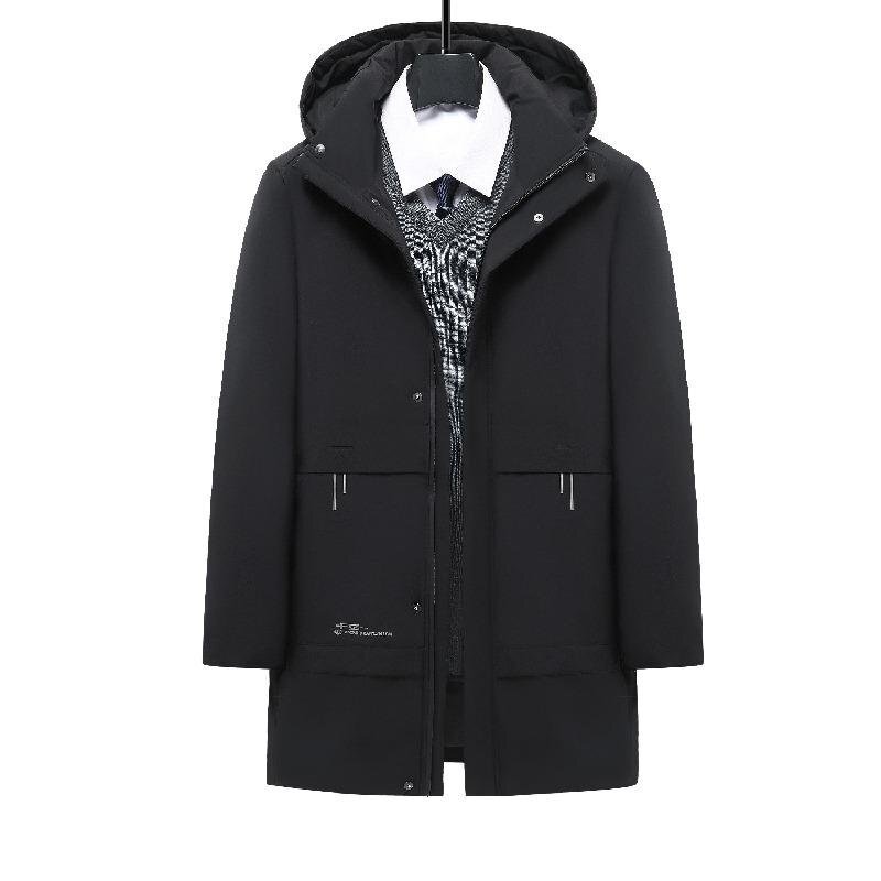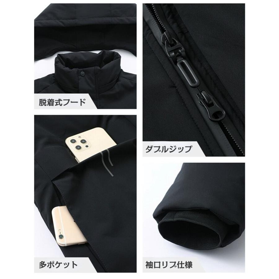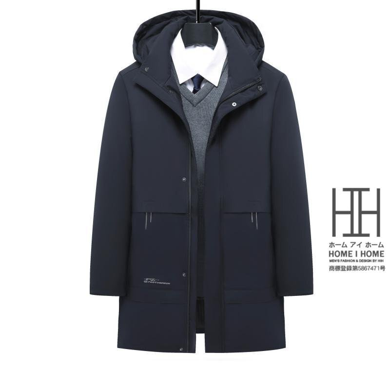 ダウンライナー脱着可能のミディアム丈フード付きジャケット メンズ ダウンコート ビジネスコート 防寒対策 保温 通勤 暖かい フード取り外せる アウター