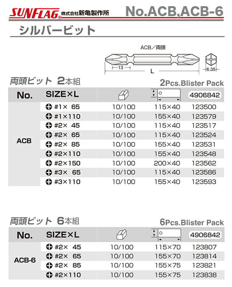 新亀製作所 両頭ビット(2本入) +2×110 No.ACB