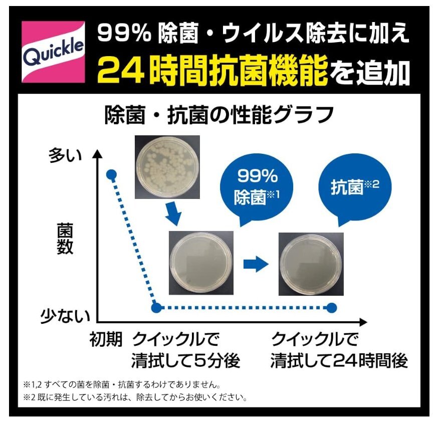 | 商品の説明 | キッチン床の油汚れや、ダイニング床の食べこぼしの汚れをゴシゴシしないで拭きとれる強力タイプのウエットシート。 ベタベタ汚れに強い洗浄液採用し、フロア用クイックル史上最強のふき取り力※1。 99%除菌※2・99%ウイルス除去※2*・消臭も。 ※1 当社フロア用ウエットシート調べ ※2 すべての菌・ウイルスを除去するわけではありません * エンベロープタイプのウイルス1種で効果を検証 商品の特徴 ●香りが残らないタイプ ●掃除機をかけずに、いきなり使ってもOK ●1枚(両面)で約15~20畳をおそうじ可能 |